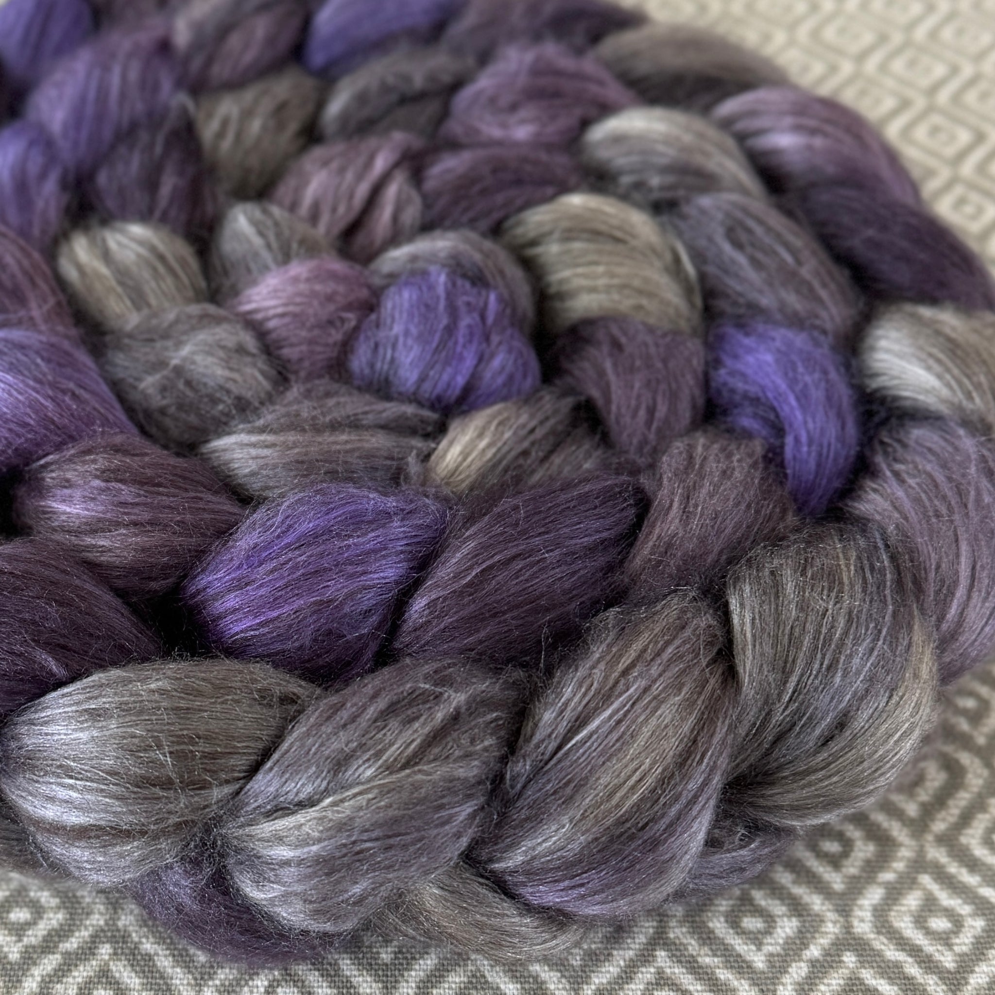 Please note that the Yak/Silk will come unbraided in a nice bag that can sit flat. It's really nice to spin directly out of the bag!