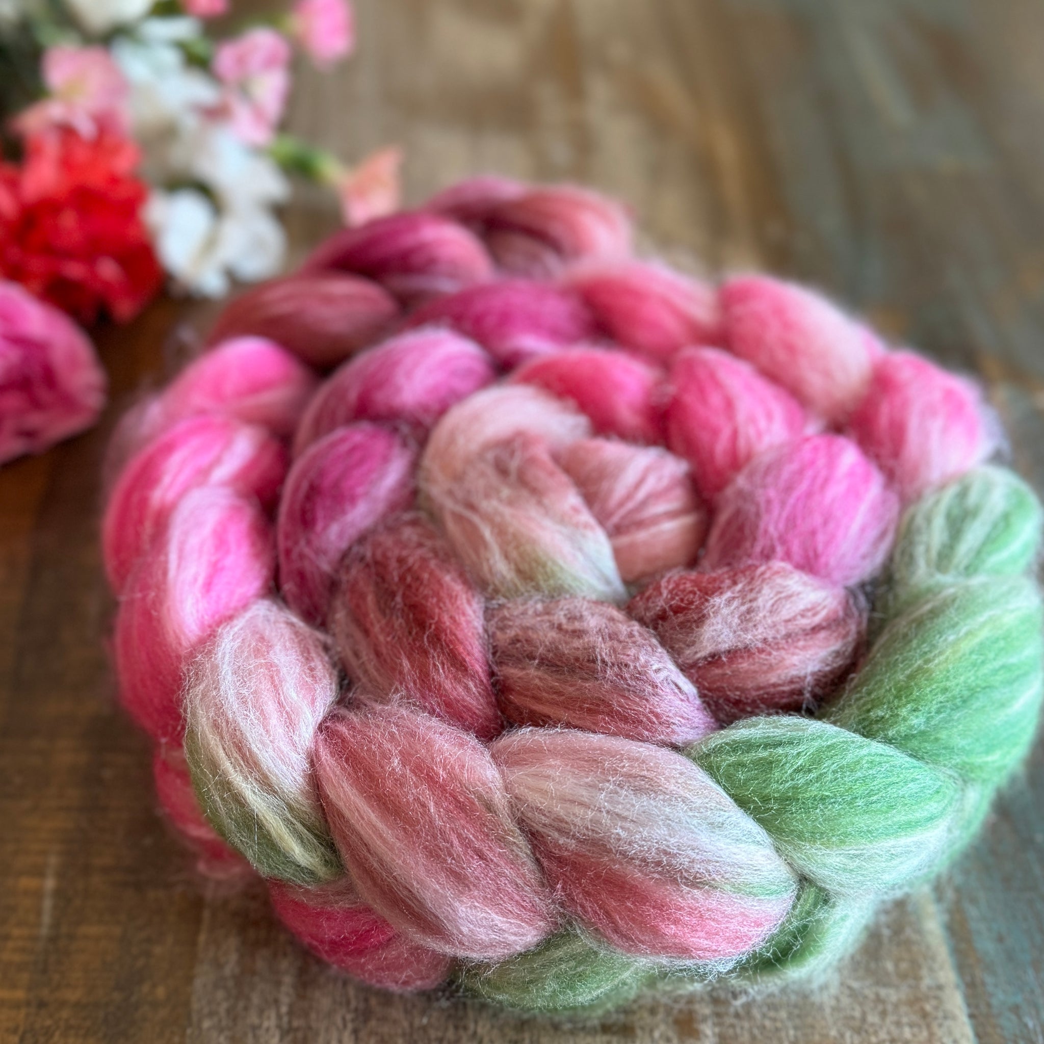 Merino Bamboo Silk Roving - Love Notes