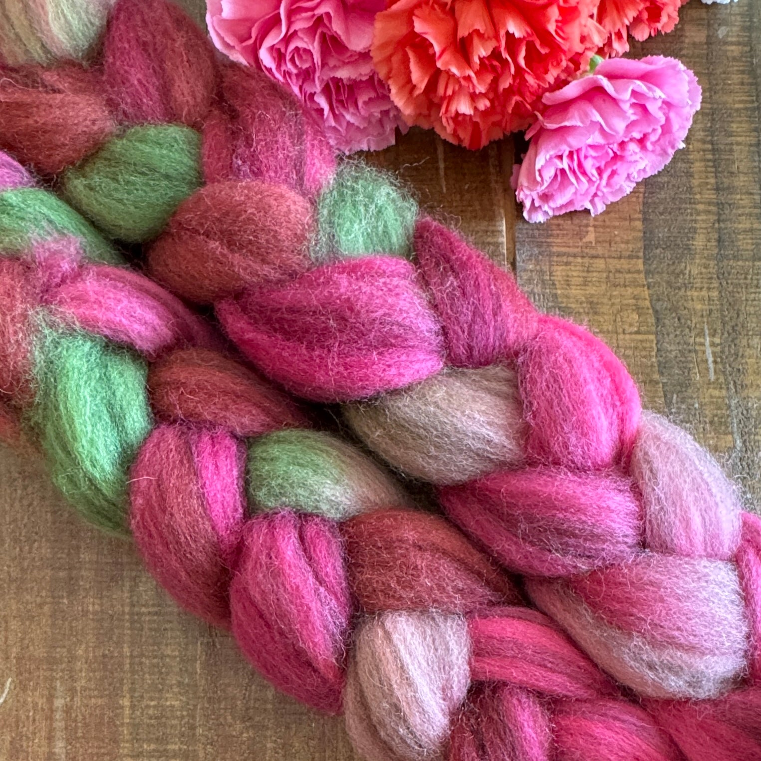 "Heathered" rovings are made of soft BFL wool that have stripes of darker wool running lengthwise throughout the roving. When overdyed in the various colorways, it creates a unique depth of color as both the dark and lighter colors combine.