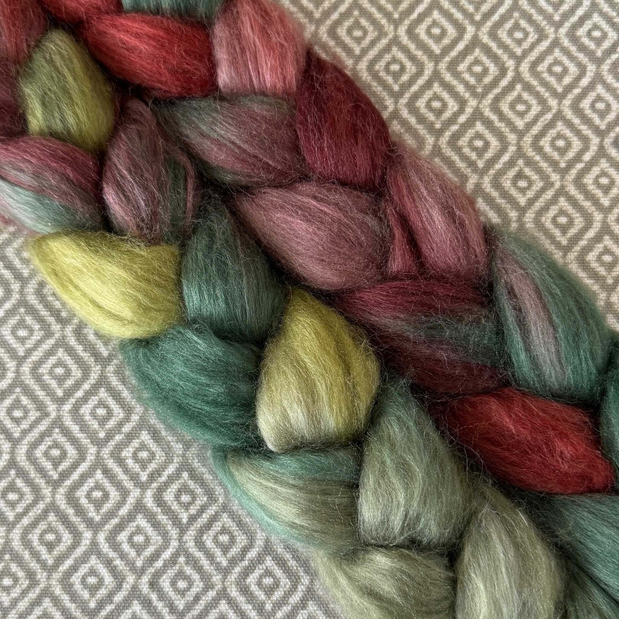 Merino Camel Silk Roving - Holly Berry
